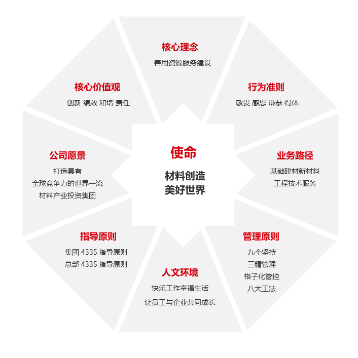 中國建材一路走來,創(chuàng)造了一部不忘初心、艱苦創(chuàng)業(yè)、拼搏奮斗的輝煌歷史。深厚的文化底蘊(yùn)以及高度的國企責(zé)任,鑄就了中國建材集團(tuán)獨(dú)具特色的文化體系。這套文化體系激勵(lì)著中國建材人一路攻堅(jiān)克難、自立自強(qiáng),為國家乃至全世界源源不斷地提供先進(jìn)的產(chǎn)品和專業(yè)的服務(wù),也讓我們從一家草根央企成長為全球最大的綜合性建材產(chǎn)業(yè)集團(tuán)。